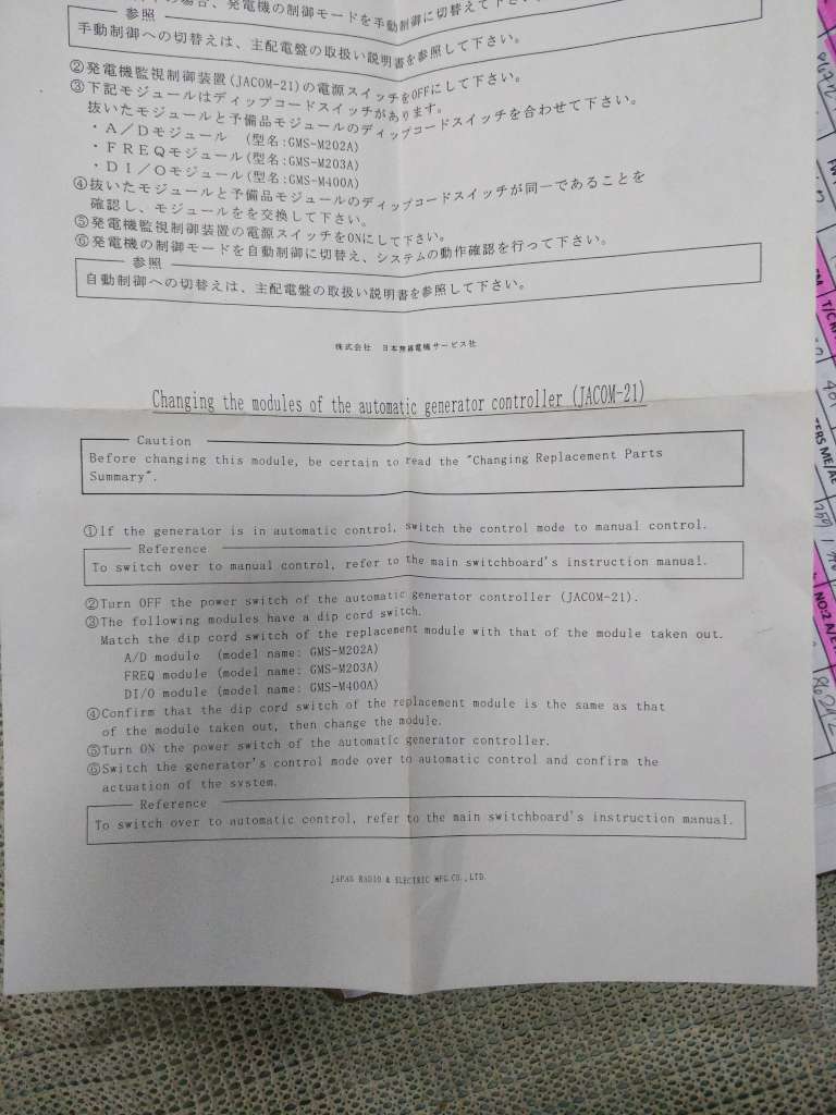 CHANGING THE MODULES OF THE AUTOMATIC GENERATOR CONTROLLER ( JACOM-21) CRITICAL ITEM