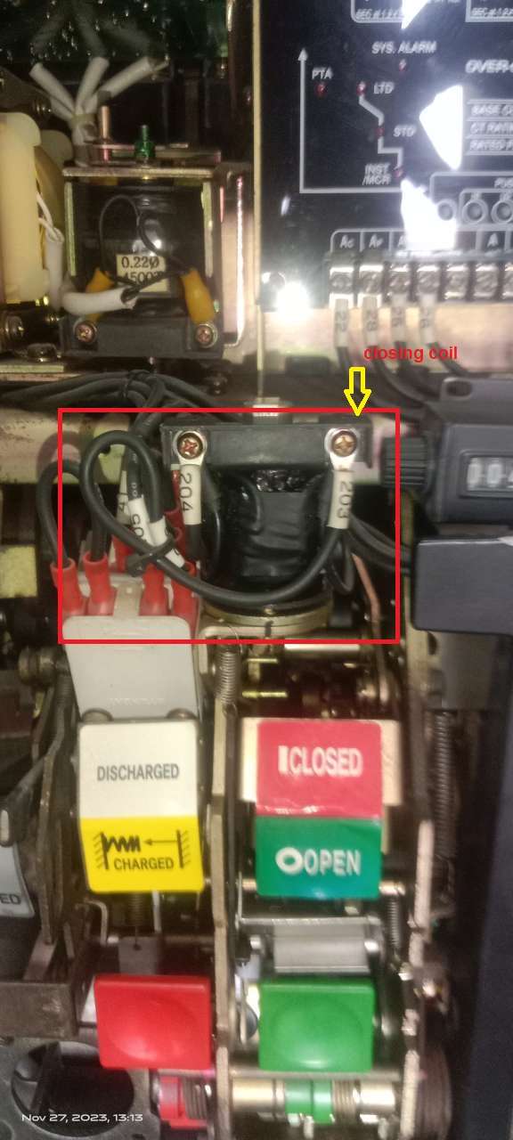 CLOSING COIL BURNT OUT NEED REPLACEMENT, ANOTHER SPARE