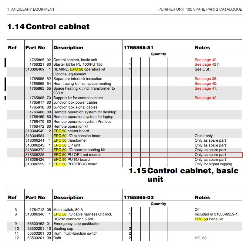 LO PURIFIER NO.1 EPC 50 OP FRONT MODULE UNIT