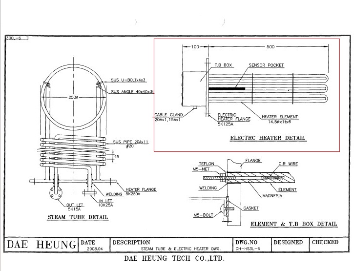 ELECTRIC HEATER ELEMENT( 6 PIECES) WITH FLANGE MATERIAL- SUS304 CAPACITY- 3 PHASE, 440V, 60HZ, 15 KW, SENSOR POCKET- 14.5 x 1.0T