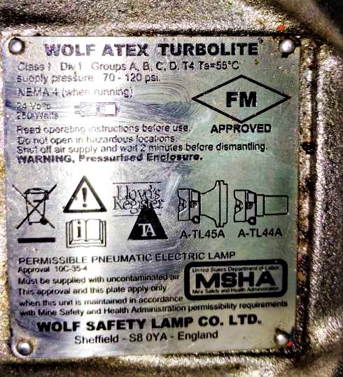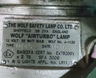 MAKER - WOLF ATEX TURBOLITEWOLF SAFETY LAMP CO LTDVOLT -24VWATT - 250W