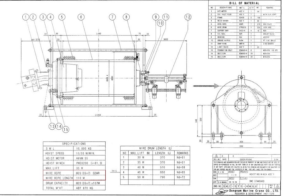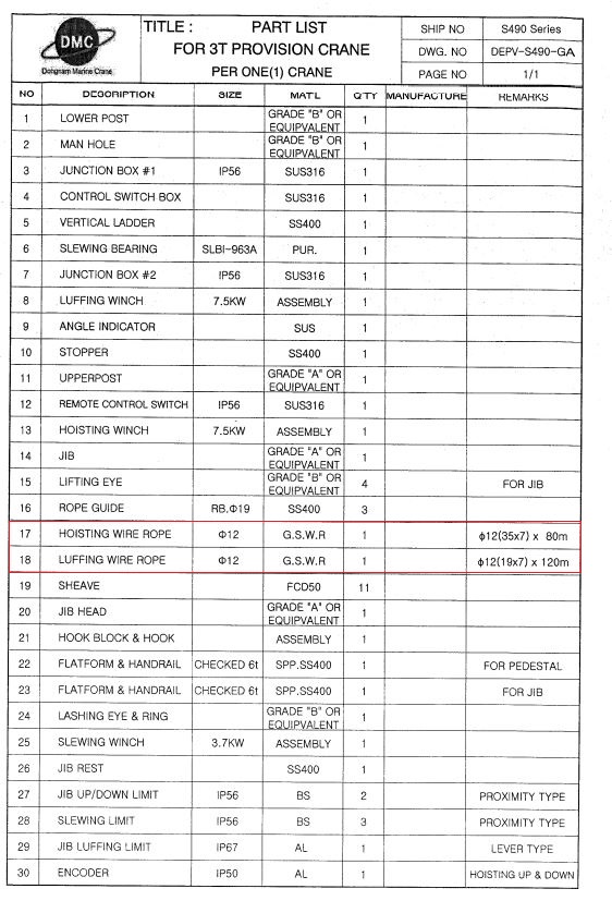 DD- WIRES ( Hose Handling, Provision Crane, Lifeboat wire, rescue boat wire, Accomodation Ladder, E/R crane wire )