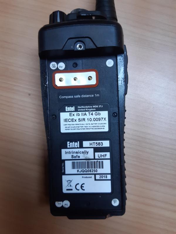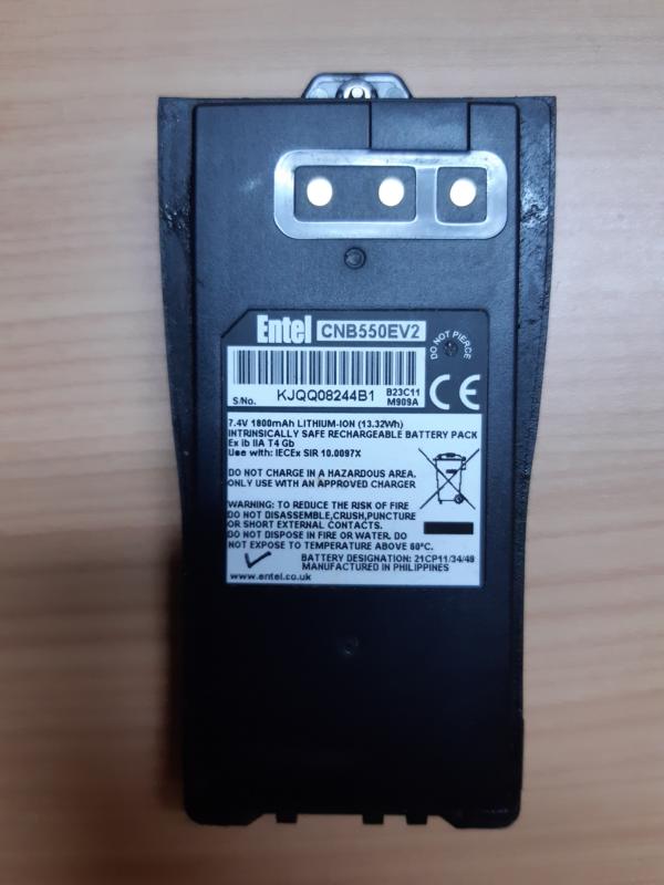 Make: Entel, Model: CNB550EV2, FOR USE IN "ENTEL HT583" WALKIE - TALKIE.SPECIFICATIONS: 7.4V 1800mAh LITHIUM-ION (13.32Wh) INTRINSICALLY SAFE RECHARGEABLE BATTERY PACK,Photo attached for your reference.